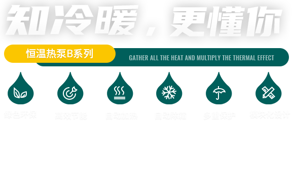 外觀優(yōu)雅、大氣,抗老化、耐腐蝕。全天候可靠工作。空氣源熱泵是一種從低溫熱源吸取熱量,使其在較高溫度下轉(zhuǎn)換為可利用能源的高效率的環(huán)保節(jié)能型產(chǎn)品。AQUA愛克空氣源恒溫熱泵分為常溫和低溫兩種不同型號。